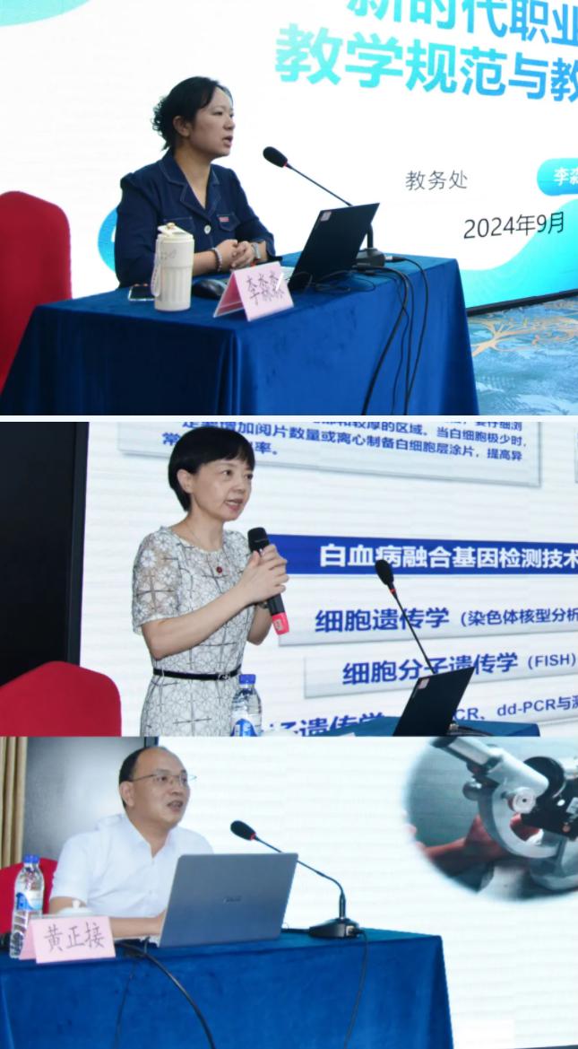 培训期间,多位专家和学者带来精彩纷呈的主题讲座,从不同角度为临床教师开启教学新思路。廖伟坚教授的《用心上课,用情感人,以理服人,如何上好一堂课》,强调上课用心、情、理,为教师构建全面的上课理念框架。李淼淼副教授的《新时代职业教育教学规范与教学管理》,阐述新时代职教规范管理要求,给予教学宏观的方向指引。陈素清主任医师的《基于医学生临床思维的培养,如何开展临床床边教学》,聚焦临床思维培养与床边教学开展,助力教师们更加有针对性地设计床边教学内容和流程,引导学生在实际临床场景中观察、分析和解决问题,提高学生的临床思维能力。黄慧芳主任医师的《提升医学理论课教学效果——幻灯片制作的心得分享》,从提升医学教学效果的角度出发,帮助学生更好地理解复杂的医学理论知识,提升医学理论课的教学质量。黄正接主任医师的《做会说话的临床医学教师 “双镜”辉映沟通策略,引领学生全面成长》,提出“双镜”沟通策略,创新地指导临床医学教师沟通引领学生成长策略。叶榕副教授的《熟是经验,巧是创新——教学能力比赛经验分享》,强调经验与创新在教学比赛中的意义,启发教师参赛思路。李明媚主治医师的《因材施教,校企合作教学班教学管理的实践与思考》,着眼于校企合作背景下,依据学生差异进行教学管理的探索与实践。
