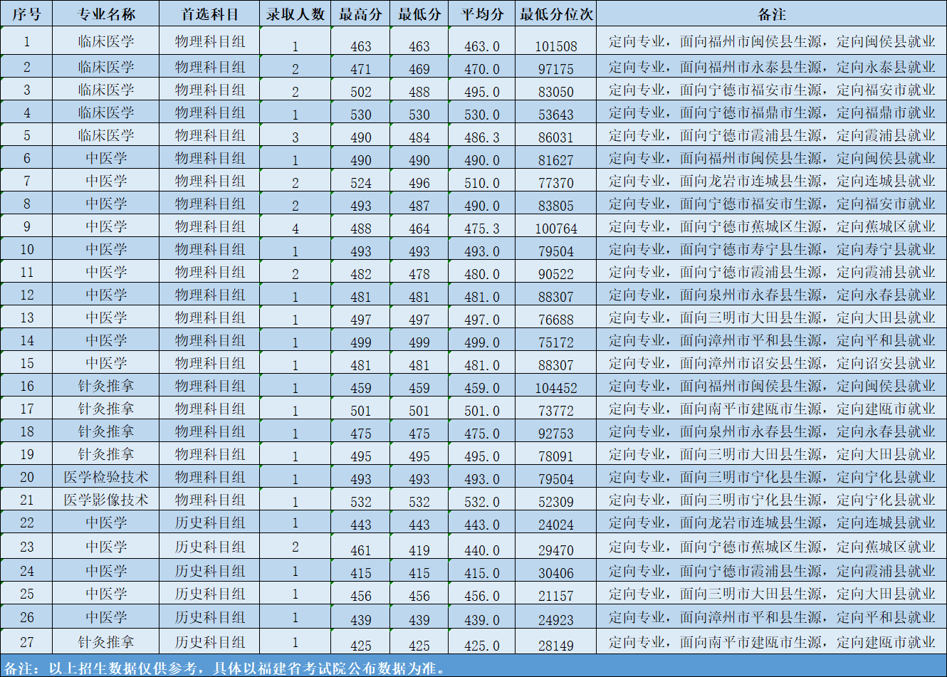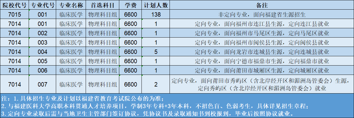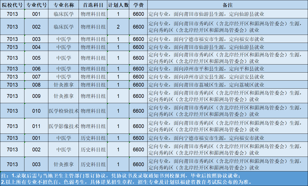 2025年福建省普通高考分专业招生计划表(定向专业)