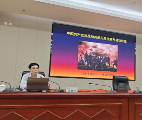 随后,曹教授围绕“中国共产党抗战动员思想的形成和发展”,清晰梳理其从萌芽到成熟的演进脉络,使师生对这一思想体系的发展历程与核心要义形成系统性认知。