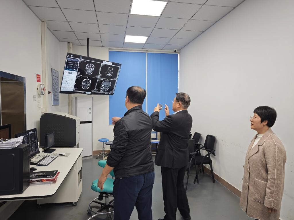 李萌教授重点参观了我校与上海联影医疗科技股份有限公司共建的“联影医学影像产业学院”,实地考察了CT、DR、MRI等先进实训设备与一体化教学环境,详细了解了“把医院搬到学校”的教学实施情况,听取了我校在校院合作、现代学徒制培养、“课堂搬到医院”教学模式等方面的改革举措与成效汇报。