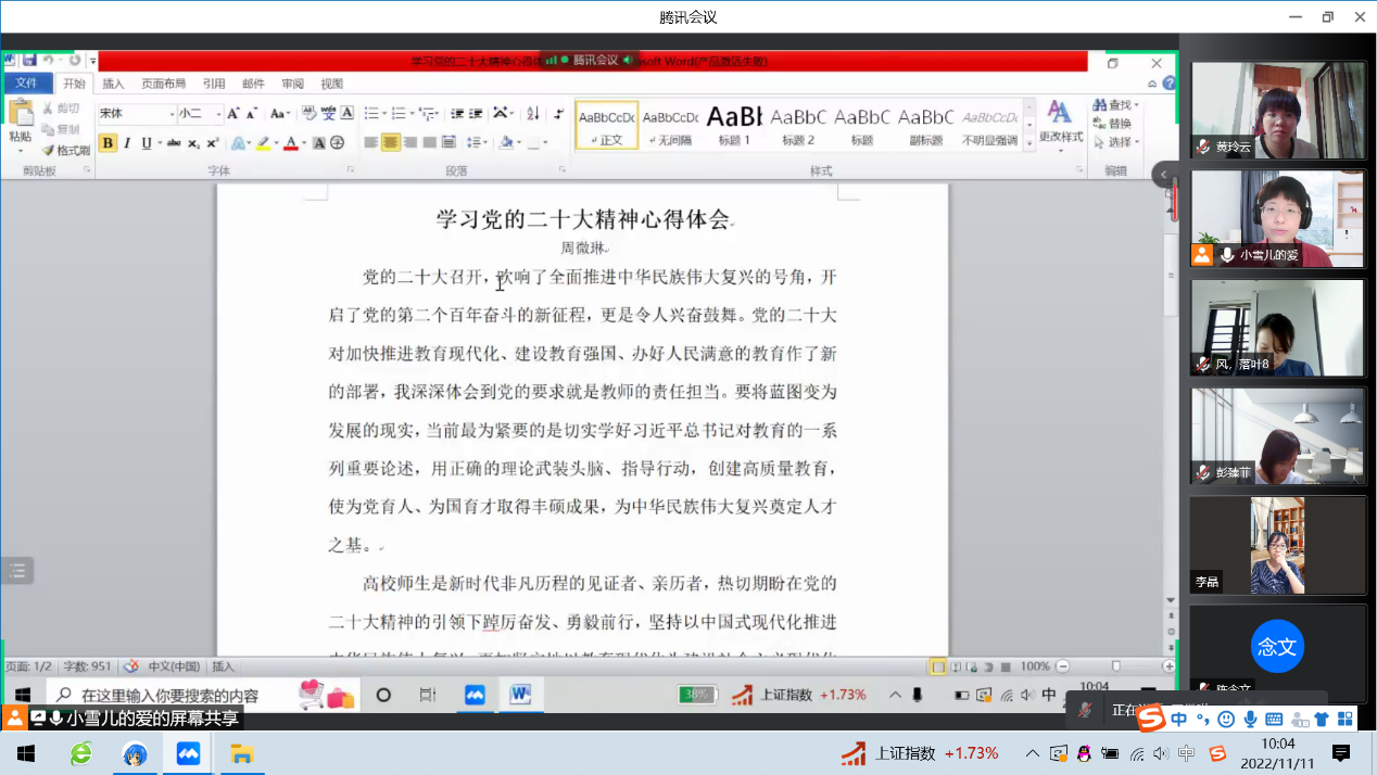 会议指出,习近平总书记在中国共产党第二十次全国代表大会闭幕会上的重要讲话催人奋进,吹响了全面建设社会主义现代化国家、全面推进中华民族伟大复兴的奋斗号角。医学技术系党员干部要砥砺奋进,一步一个脚印,书写好教育奋进之笔。