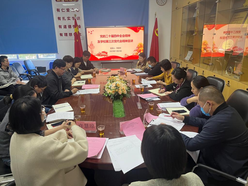 李美华系统宣讲了党的二十届四中全会的重大意义和深刻内涵,并全面阐述了校第三次党代会“一个根本、两个引擎、三个驱动、四个提升、五个服务”的战略任务。她号召要增强贯彻落实全会精神的政治自觉、思想自觉、行动自觉,科学谋划学院“十五五”时期规划,并将全会精神、校党代会精神转化为推动药学院高质量发展的具体行动。