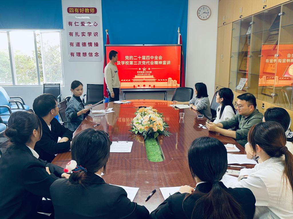为深入学习贯彻党的二十届四中全会精神与我校第三次党代会精神,切实将思想和行动统一到上级决策部署与学校发展规划上来,12月11日,药学院第三党支部书记周凯阳面向支部党员讲授深入学习贯彻党的二十届四中全会及学校第三次党代会精神专题党课。
