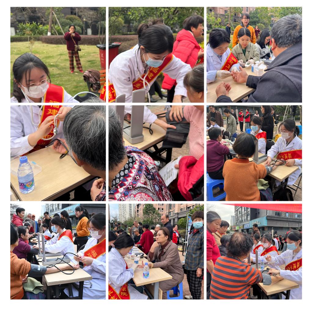 活动现场暖意融融,志愿服务专区有序铺开。师生党员在为社区老人送上拗九粥的同时,发挥专业所长,积极为前来咨询的居民提供免费血糖、血压检测服务,细致记录健康数据,针对老年群体常见的慢性病防控、用药安全等问题耐心答疑。党员志愿者们用通俗易懂的语言拆解专业健康知识,让居民在家门口就能享受到优质便捷的医疗服务。