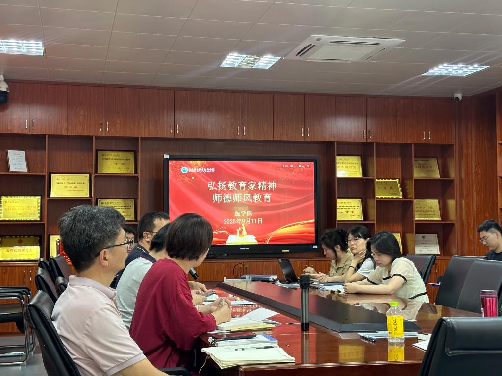 金秋九月,杏坛飘香。为大力弘扬尊师重教的良好风尚,9月11日下午,医学院召开第41个教师节表彰暨师德师风教育会议。学院LED显示屏“值此教师节,祝全体教职工安康,如意!”的暖心标语格外醒目,营造出热烈、庄重的浓厚节日氛围,表达了对全体教职工最诚挚的节日问候与崇高敬意。学院领导班子、全体教职工齐聚一堂,共同庆祝属于教育工作者的光荣节日。