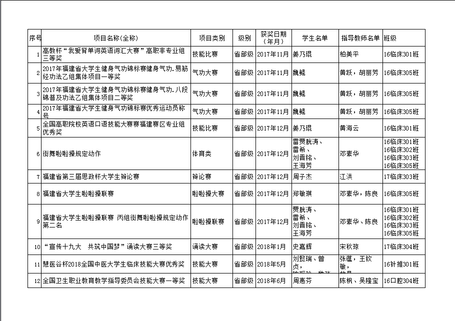 临床医学系学子在2017年11月至2018年7月期间,积极参加各类省级以上赛事,达33人次,屡获佳绩,向他们表示祝贺!