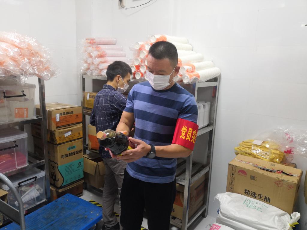 支部党员突击队深入三个食堂一线,对食材采购与索票索证台账、食品留样、从业人员健康证、食材储藏,食品加工环节与加工环境、售卖与就餐环境、人员佩戴口罩、环境消杀与记录、餐厨具洗涤消毒及记录、厨余垃圾回收、消毒液配备、食品从业人员健康码、行程码、核酸检测报告等涉及生产经营与疫情防控方面的工作进行详细检查,并就薄弱环节提出整改意见。